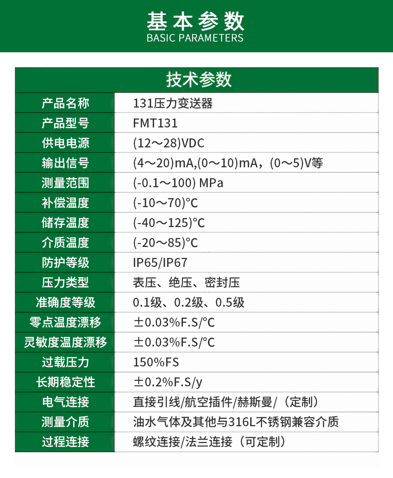擴散硅壓力傳感器(型號FMT131)